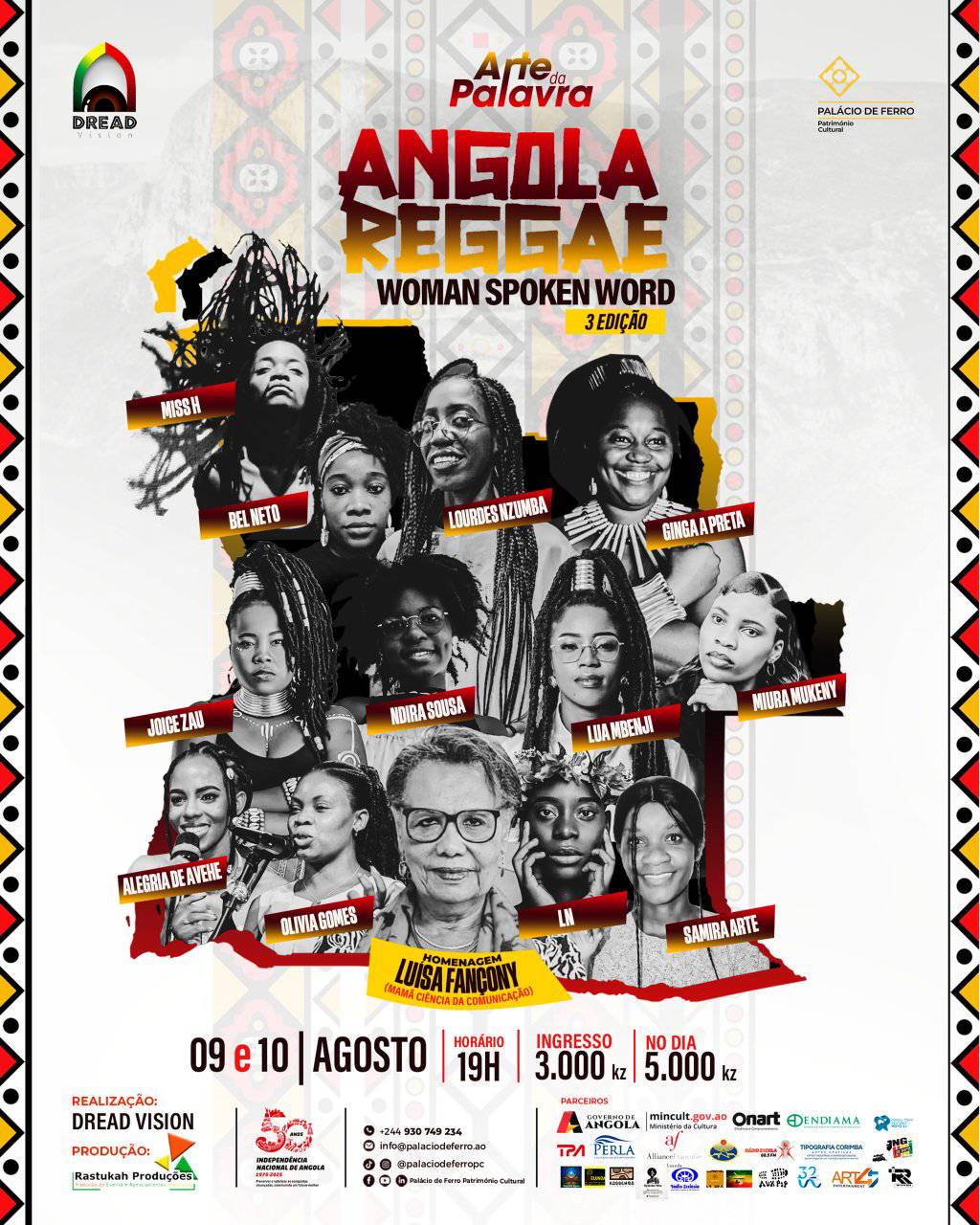 - Vou organizar um evento no dia 2025-08-09 com o tema Angola Reggae - Woman Sopken Word no/a Palácio de Ferro clica no link para saber mais.