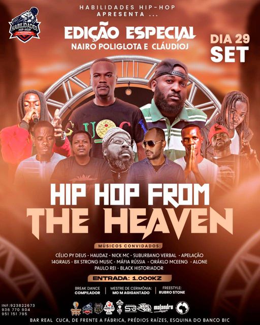 - Vou organizar um evento no dia 2024-09-29 com o tema Hip Hop From The Heaven no/a Bar Real, Cuca clica no link para saber mais.