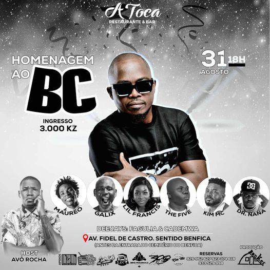 - Vou organizar um evento no dia 2024-08-31 com o tema Homenagem Ao BC no/a A Toca, Benfica clica no link para saber mais.