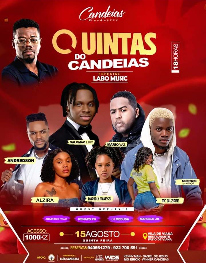 - Vou organizar um evento no dia 2024-08-15 com o tema Quintas do Candeias no/a Pátio de Viana, Vila de Viana clica no link para saber mais.