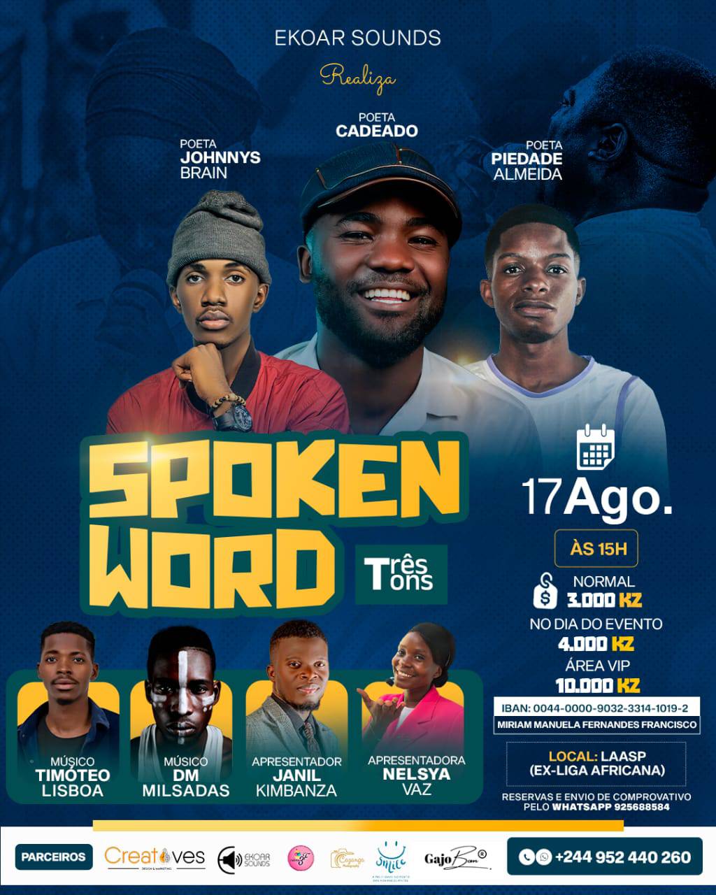 - Vou organizar um evento no dia 2025-08-17 com o tema Spoken Word Três Tons no/a Laasp (Ex-Liga Africana) clica no link para saber mais.
